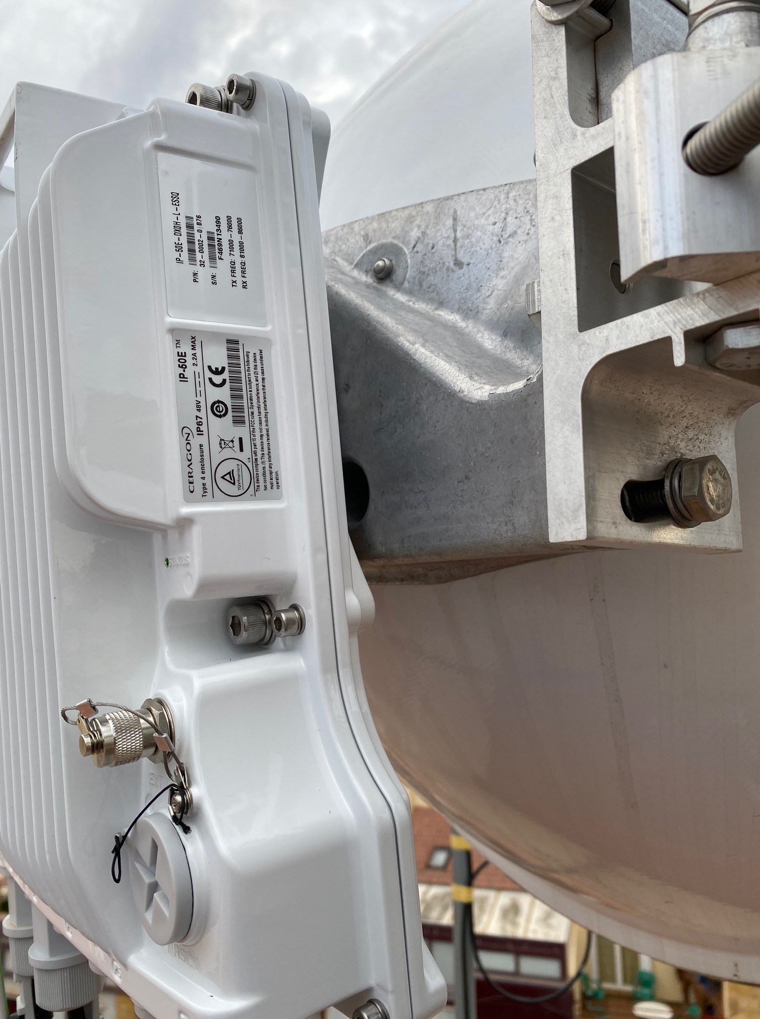 La última incorporación a esta red es el enlace IP-50E, la nueva solución de Ceragon para banda E en altas capacidades. El equipo IP-50E diseñado por uno de los mejores fabricantes mundiales, Ceragon, es un equipamiento punto a punto con banda E, que trabaja en frecuencias de 71 a 86GHz. Este tipo de enlaces son generalmente cortos, consiguiendo una distancia de entre 2 o 3km, con el objetivo de conseguir capacidades máximas.